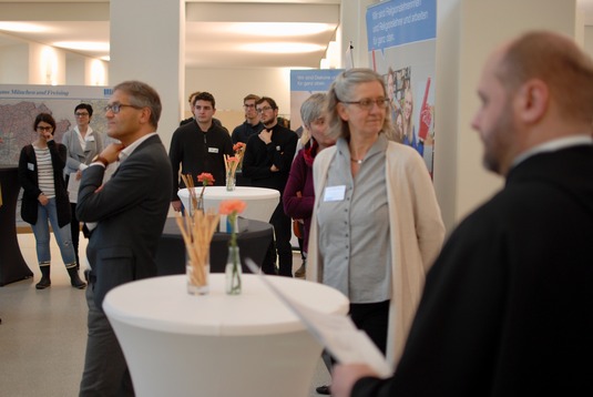 Im Anschluss gab es bei Häppchen und Erfrischungen die Möglichkeit, die Gespräche aus den Speed-Datings zu vertiefen. Sebastian Walter, Fachreferent für Öffentlichkeitsarbeit und interne Kommunikation, präsentierte außerdem die Schaltzentrale der Diözese und gab eine Führung durch das Gebäude. Seit 2016 wird die Diözese von hier aus zentral verwaltet und organisiert. Zuvor waren die einzelnen Büros des Ordinariats über die ganze Stadt verstreut. Im neuen Gebäude sollen kurze Wege die Kommunikation erleichtern und die Gemeinschaft zwischen den Mitarbeitenden fördern. Ein modernes Gebäude für ein modernes Ordinariat. Doch architektonische Maßnahmen alleine werden der Diözese nicht helfen. Auch personell muss das Bistum mit der Zeit gehen und sich für Veränderungen öffnen, denn in den nächsten zwei Jahrzehnten werden rund ein Drittel der Seelsorgenden ausscheiden. Der EinBlick ins Ordinariat zeigt, wie modern und fortschrittlich kirchliche Organisation auf höchster Ebene funktioniert.